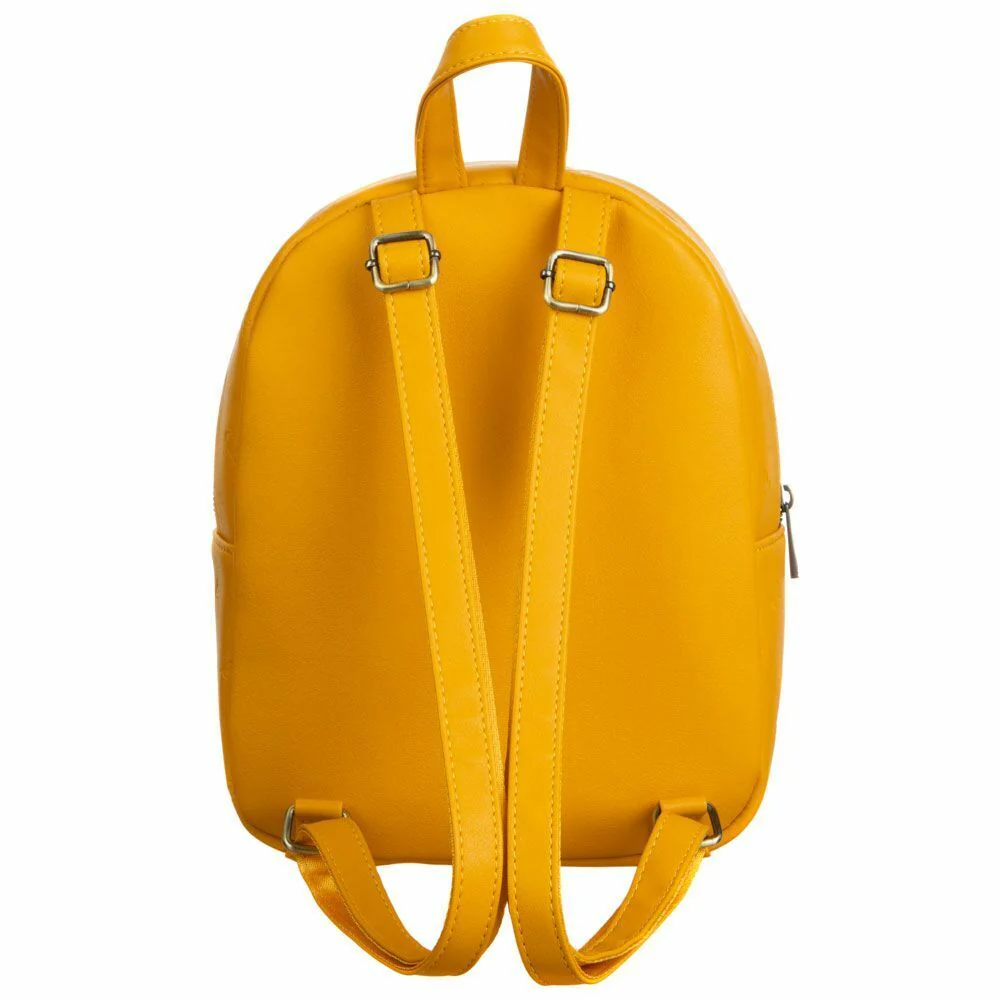 Lo zaino è in tinta unita ma il simbolo della casa Tassorosso è impresso in rilievo su tutto la superficie.